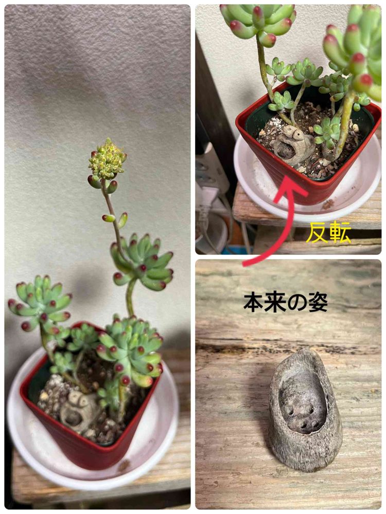 本来右下の形でちび多肉入れるんだけど、ひっくり返したら顔に見えたので置いてみた!WWWWWW意外と可愛い🍀