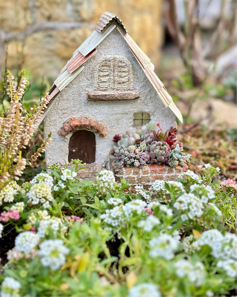トタン屋根のお家を完成させて多肉を寄せ植えしました。