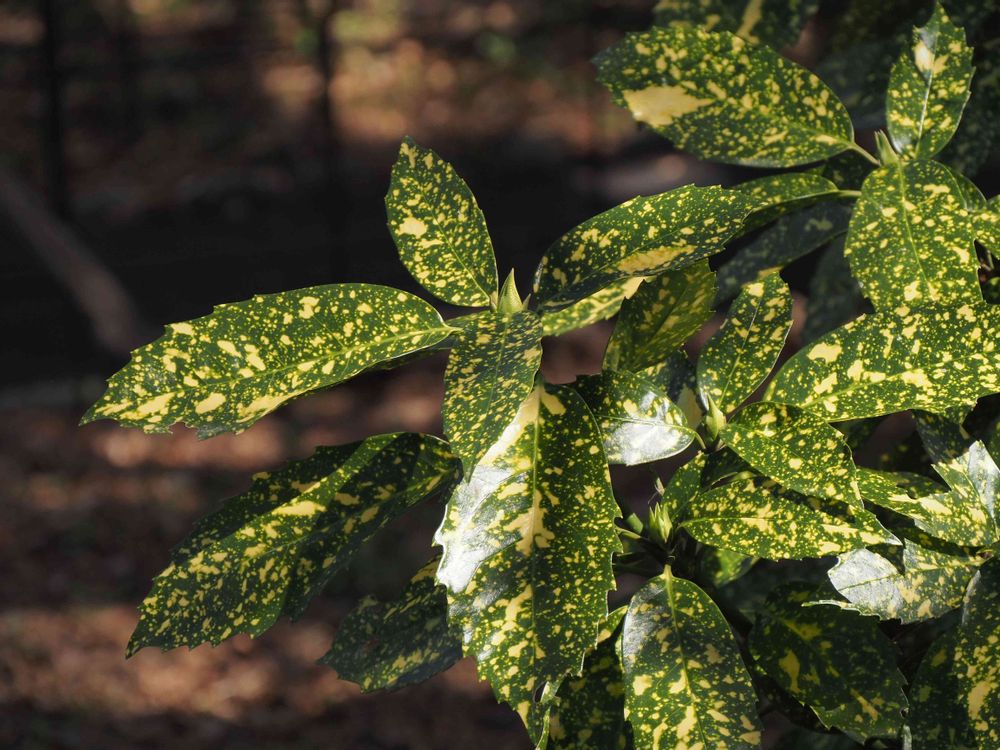 アオキの葉っぱ綺麗ですよね。