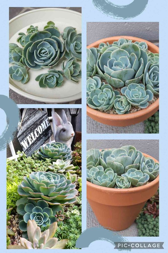 昨年秋、小さな多肉花壇を作って、大好きな薔薇に似ている七福神を植えました。水色に近い淡い緑色。