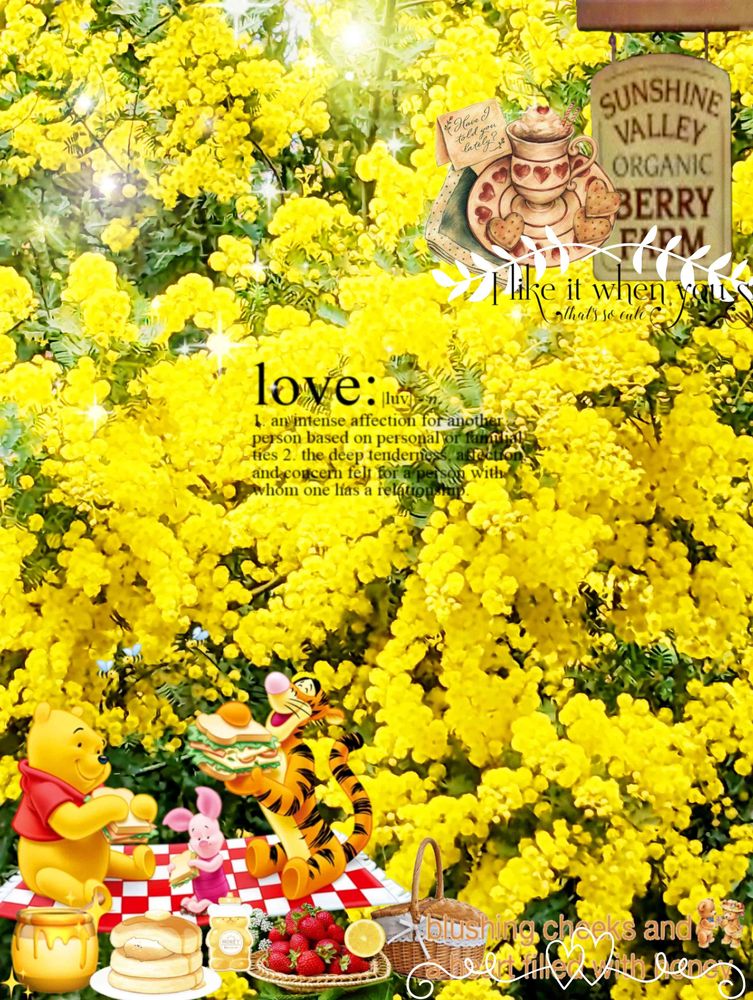 おはよーいいね🐱 満開のミモザ✌️✌️プーさんもティガーもいますね~💖