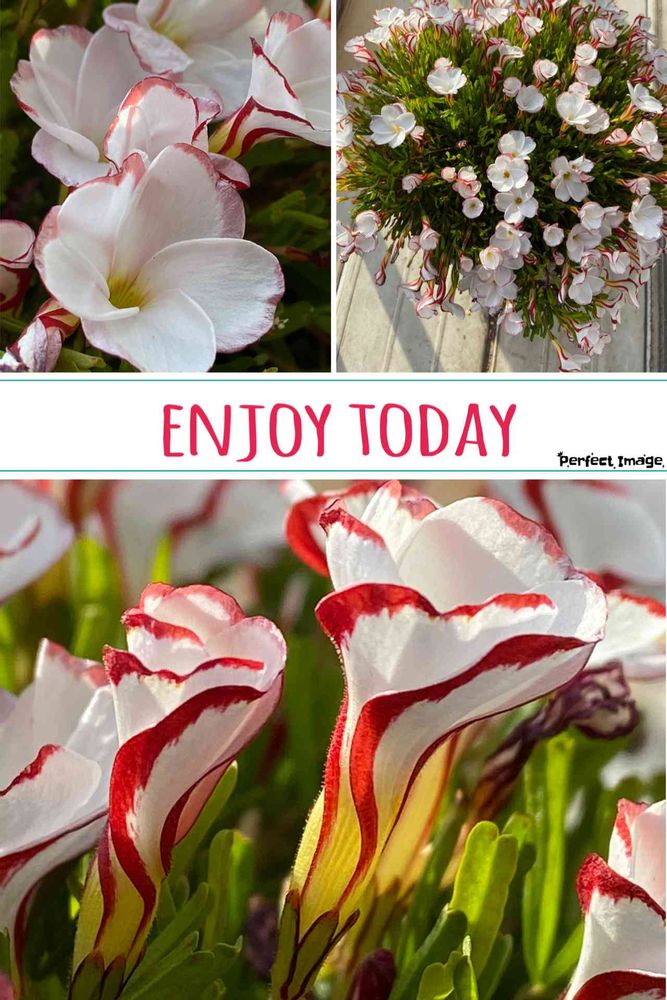 オキザリスパーシーカラーが日差しを浴びて可愛いく咲いてます🌀❤️🤍