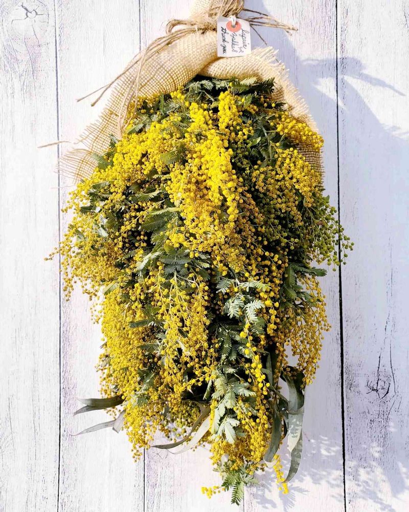 ミモザのスワッグ、ボリュームが凄いですねぇ💛💛💛