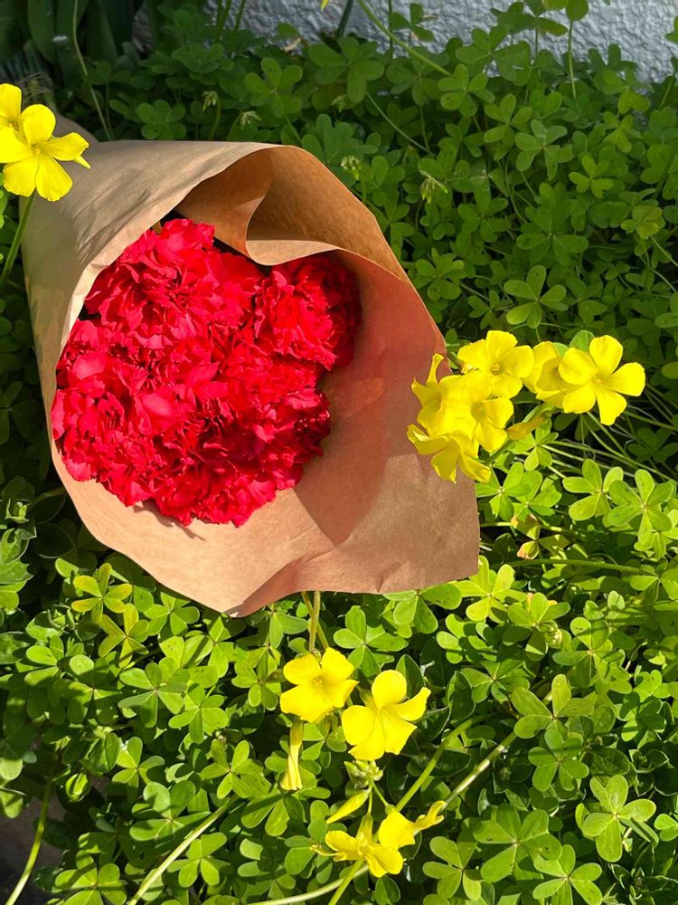 ( *´艸`)馴染みのお店でカーネーション10本プレゼントをされていました🎶
