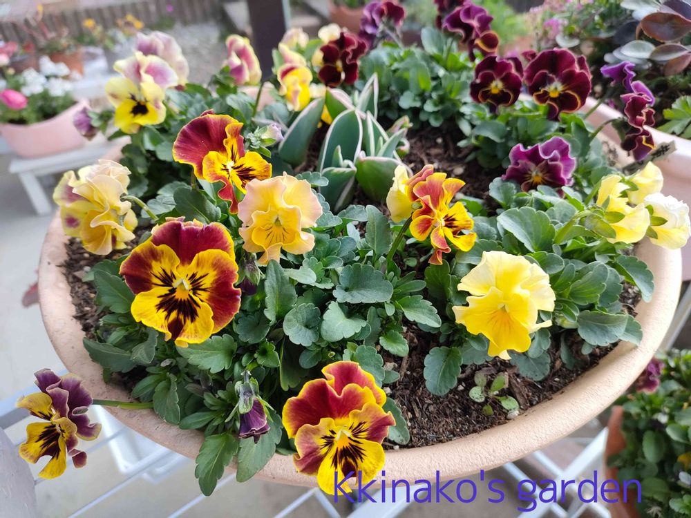 Kkinakoさんの小さな庭,自家採種ビオラ,植木鉢の投稿画像