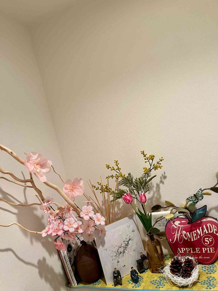 トイレ飾り棚にミモザとチューリップを追加❗️