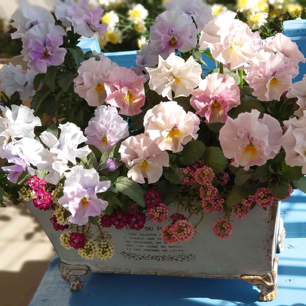 ブルー系とピンク系を植えたけど今はとても優しい花色で可愛い💗