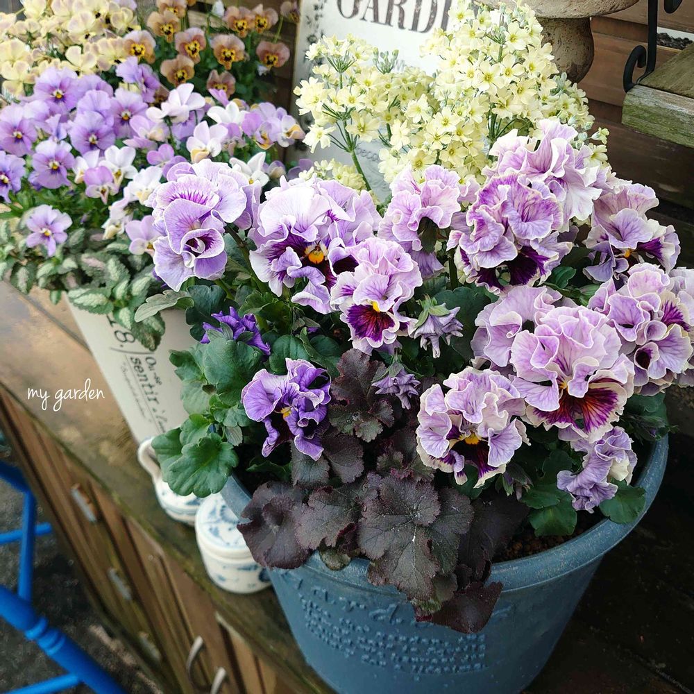 パンジーパルムディレーヌが盛り盛りになってたのでウィンティーと寄せ植えにしました❁