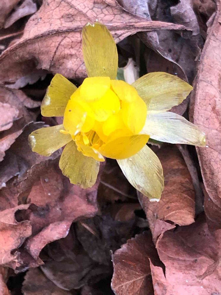 夕方の福寿草、花びらは、閉じて居ますが額が、開いたまま、これも面白くて、写メしました😊