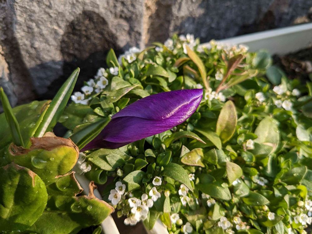 キッチキチの詰め詰めで植えてしまったプランターからひときわ伸びてきてくれたクロッカス。
