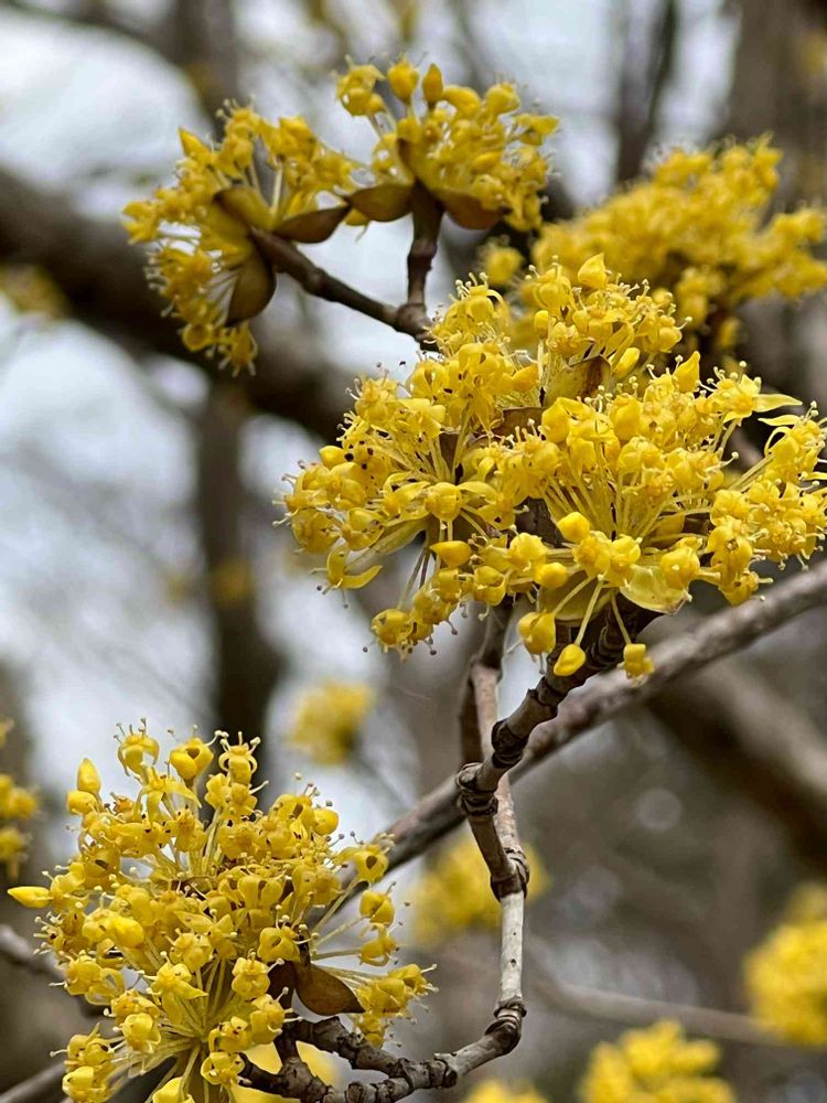 サンシュユ(山茱萸)は春一番に黄金色の花を咲かせることから「春黄金花(ハルコガネバナ)」と呼ばれます。