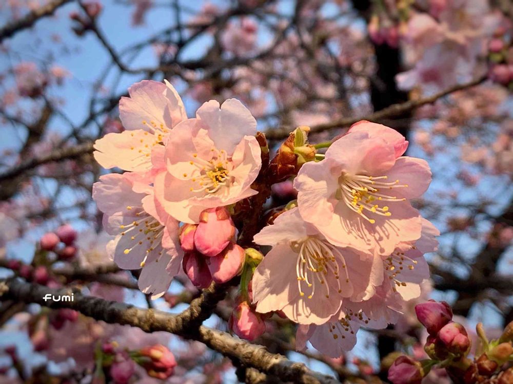 河津桜より少しピンクが薄くて、河津桜と染井吉野との間ぐらいに咲きます