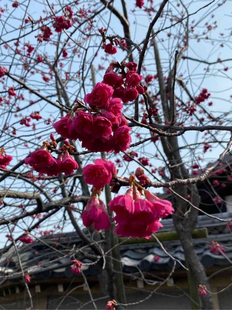 京都出町柳駅前🚉の浄土宗「長徳寺」です。早咲き桜で有名な「おかめ桜」の横に咲いていました。🎉🎉