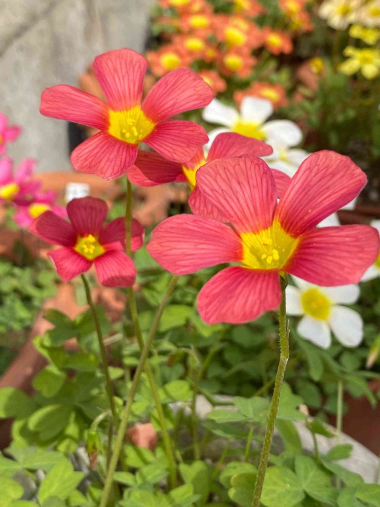 オキザリスを中心に、小さな庭で花を楽しんでいます。