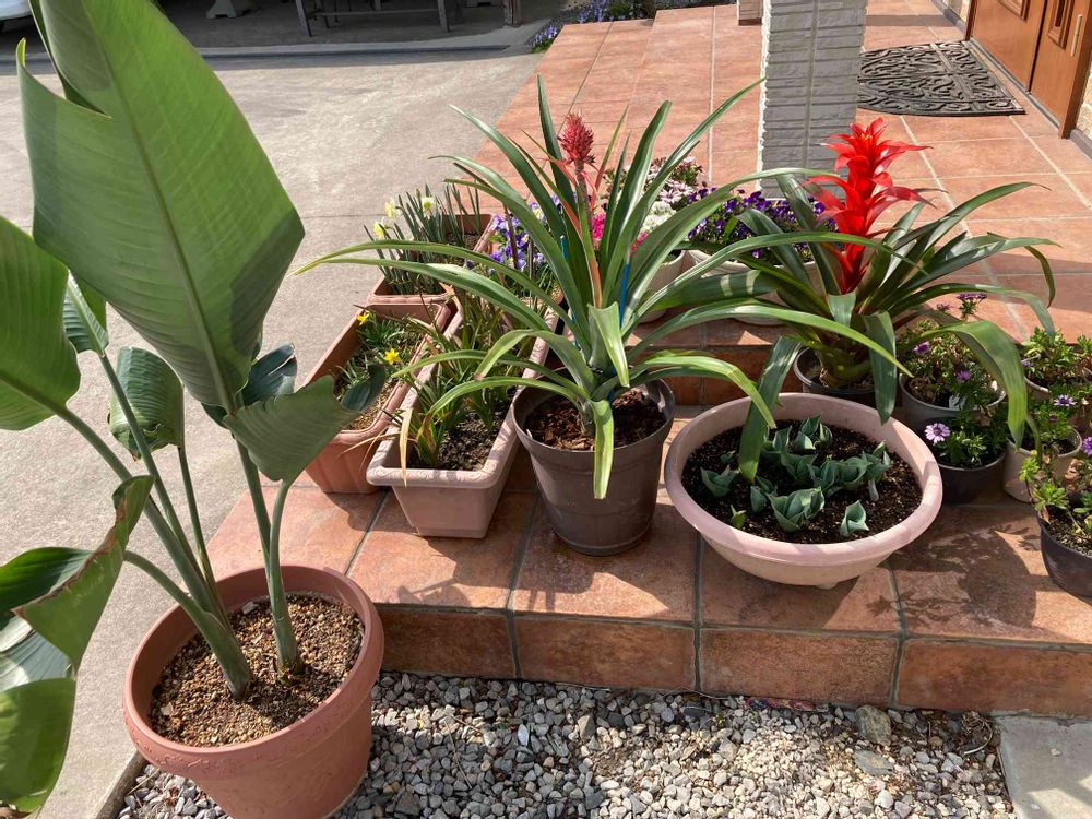 今日は、リビングにいるストレリチア、観賞用パイナップル(アナナスナヌス)、グズマニアさん