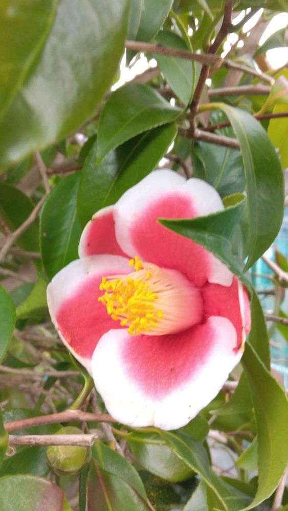 小さな庭,白縁どりの赤椿(玉之浦)の花,花のある暮らしの投稿画像