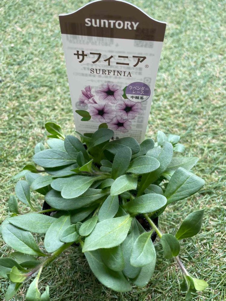 サフィニア、昨年はイエローにしたので、今年はラベンダーレースにしてみました✋