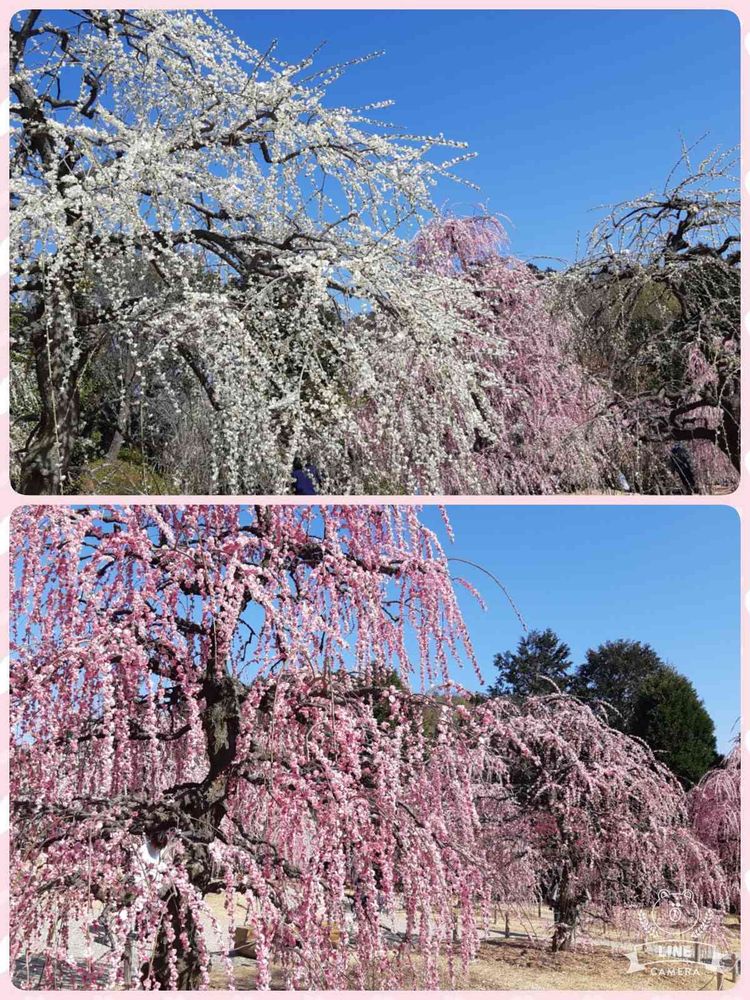 満開のしだれ梅が、青空に映えて、とても綺麗でした🎵🎵。