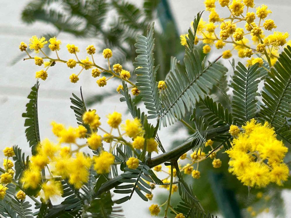 ご近所さんにミモザの花が咲いていて、いつも通ると黄色の愛らしい花が沢山咲いていて心を和ませてくれます😊