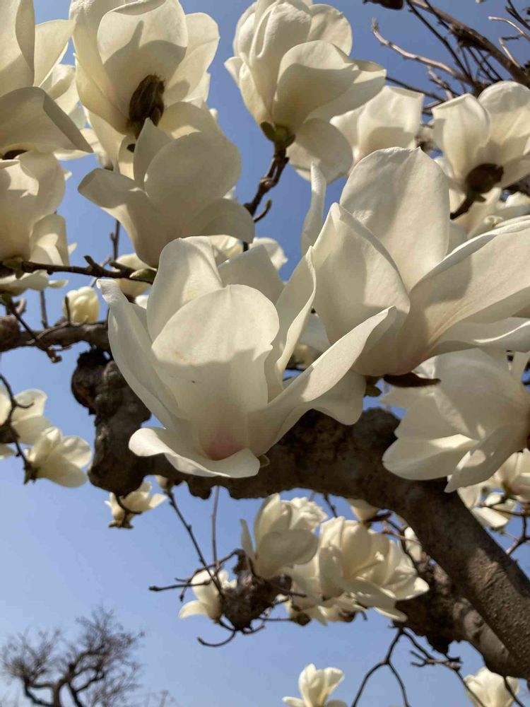 車で通りかかったら青空にモクレンが綺麗に咲いてて…満開でした(*˙꒳˙*)