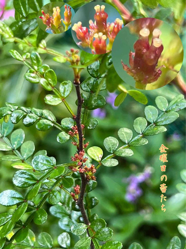 初めて見るけど普通の実山椒とは違うみたい…しずくにキラキラまるでアクセサリーの様に輝いています♫