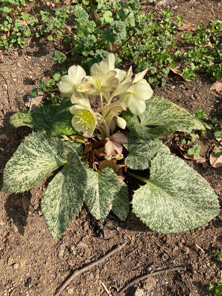 昭和記念公園はあちらこちらに色んな種類のクリスマスローズが咲いていました このコはお花は普通ですが葉っぱがゴージャスでした♬