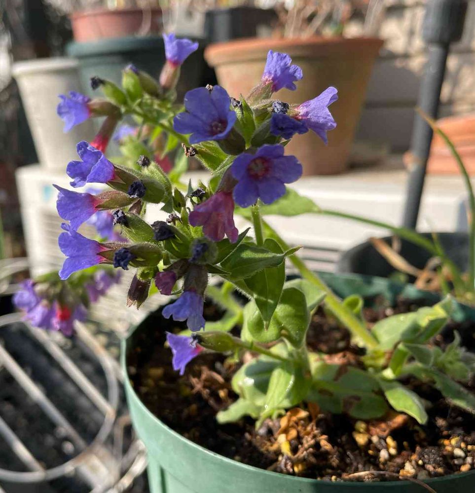 早春の寒さのなかで咲いてくると❄️つぼみはピンクで花が開くとこのブルー🫐