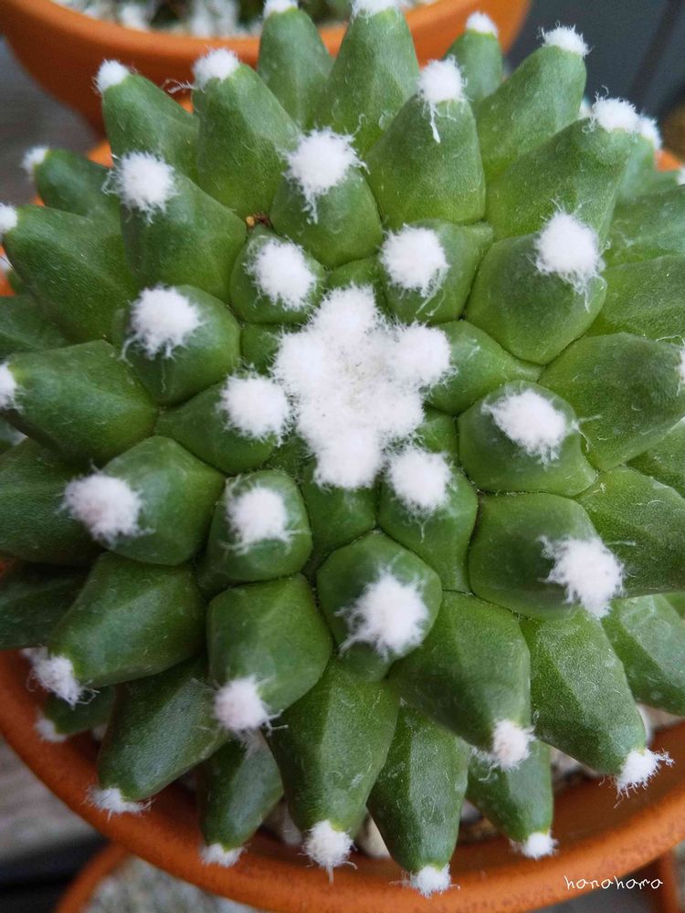 雪のような白い綿状の物が魅力的でとても目を惹き撮影していたサボテンです。