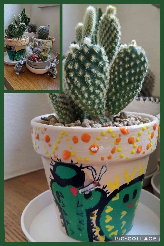 わぁ~~どどこさんのサボテンの絵の鉢にサボテン🌵可愛いー♥♥今日も良い日でありますようにー😋