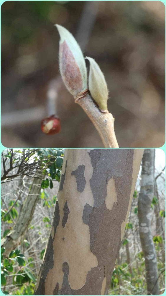 『冬芽は長さ9〜13mmの紡錘形で扁平。芽鱗は2〜5個』。もうすぐ芽吹きます。萌え〜、ています。