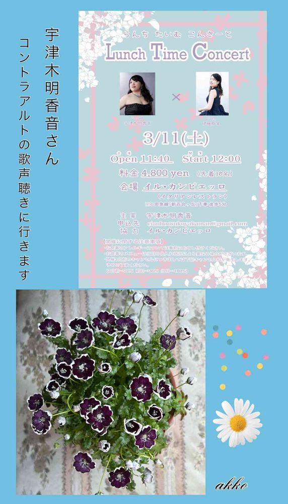 宇津木明香音さんのランチコンサートに行ってきます♥️
