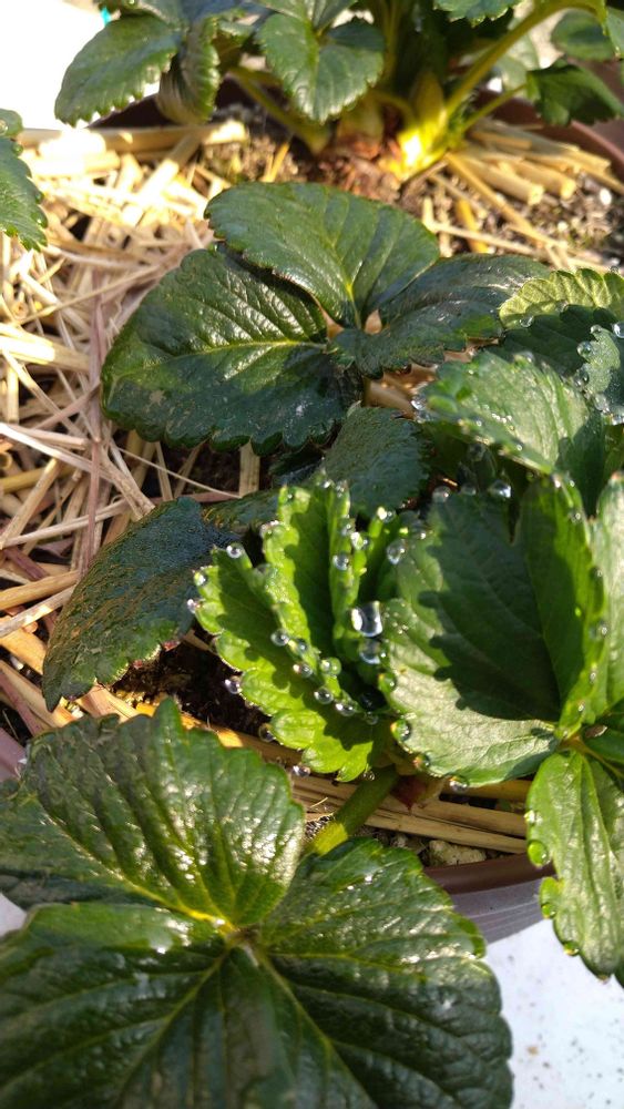 🍓の葉の水滴❛溢液現象❜ですね~🤩🤗🥰👌