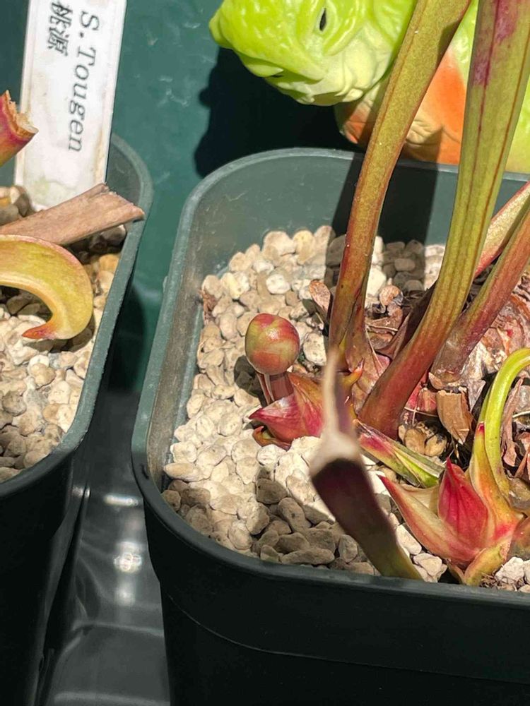 普段だと筒の成長に影響があるので、花茎はカットしちゃうんですが、今年は久しぶりに咲かせます😆