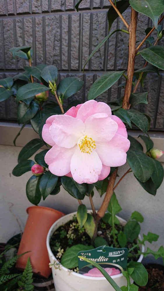 キレイな桃色の桃太郎椿。😀🎶