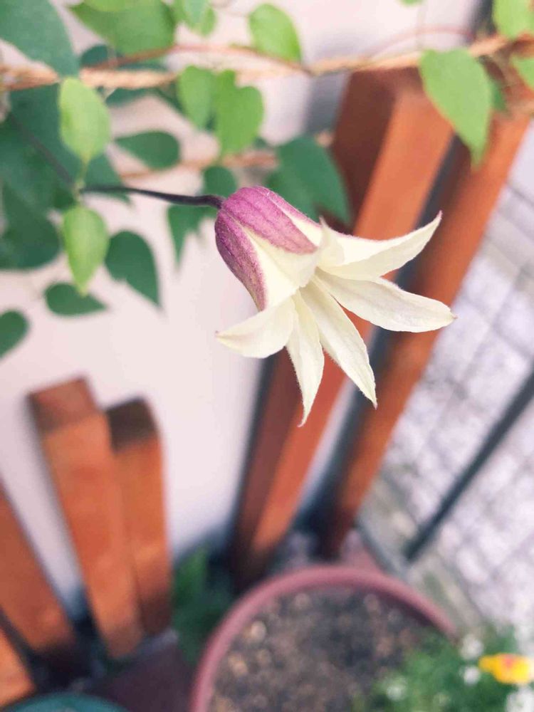 朝、お庭のシャッター開けたら念願のクレマチスが咲いていてテンション上がった!((笑
