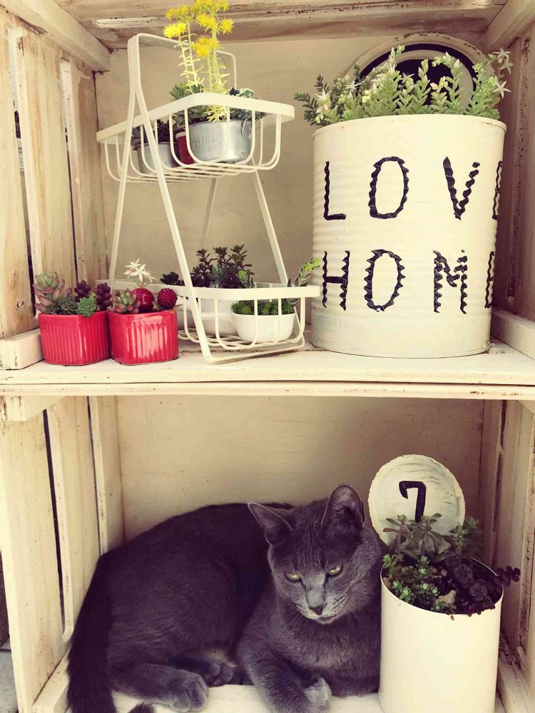 多肉ちゃんコーナーにすっぽりはまったニャンコルナ(*´◒`*)