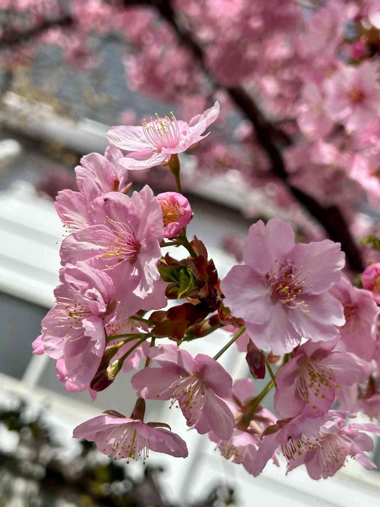 いつも通勤している最寄駅の阪急電車西向日駅近くの河津桜ですよ🌸