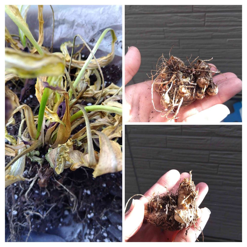 中心に大きな球根があり、周りの上に小さな球根。かたまってます。