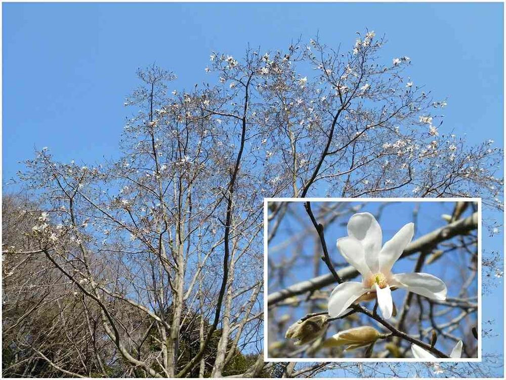 ハクモクレン♡に似ていますが、ハクモクレンよりも花が小さく、花びらは3枚少ない6枚です🌼