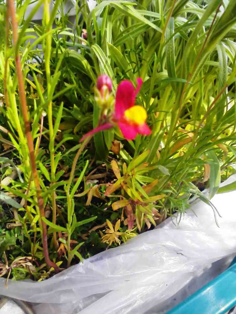 二年目の今年は紫色、黄色、桃色、しか目立たなかったのが、赤色の種発芽してました。