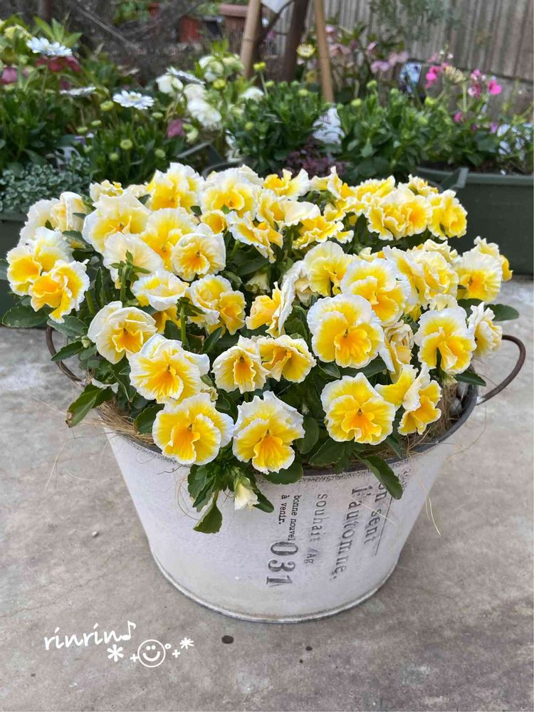 白のブリキ鉢ですよね?私も同じく白のブリキ鉢に植えています。似合いますよね💓