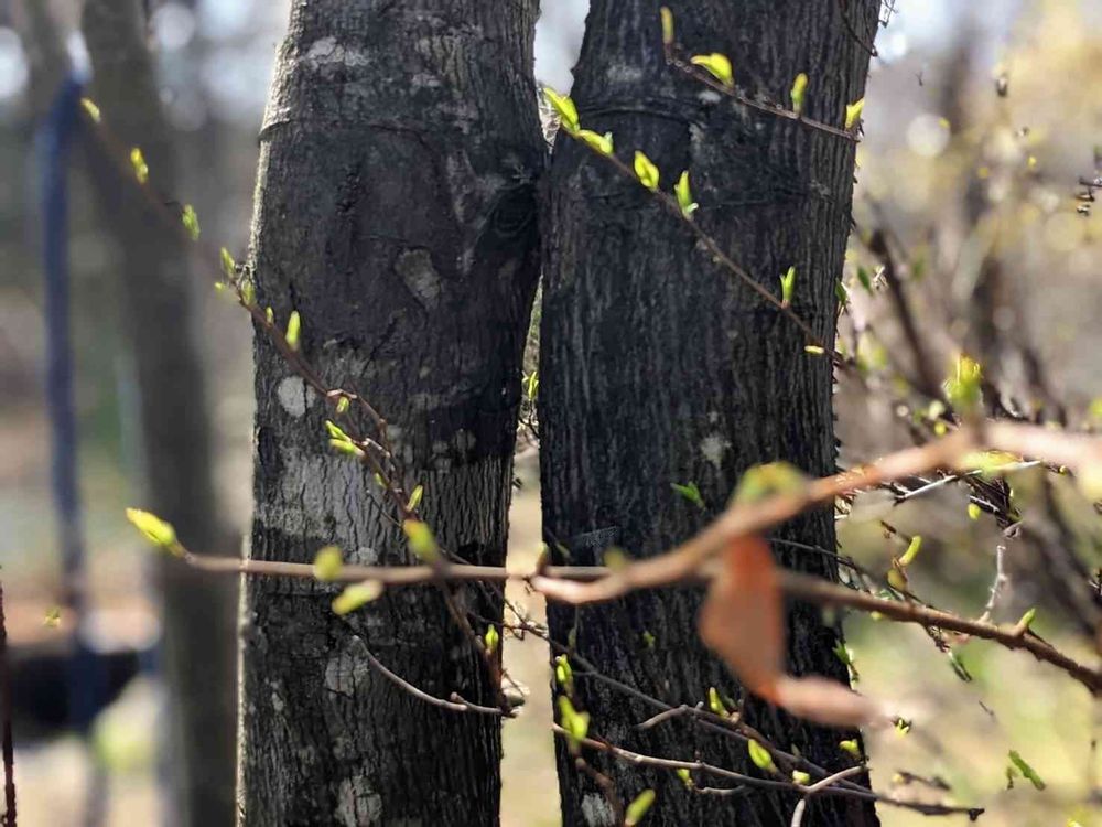 デッキ前の八重咲き小手毬にも小さな葉が段々増えて来ました