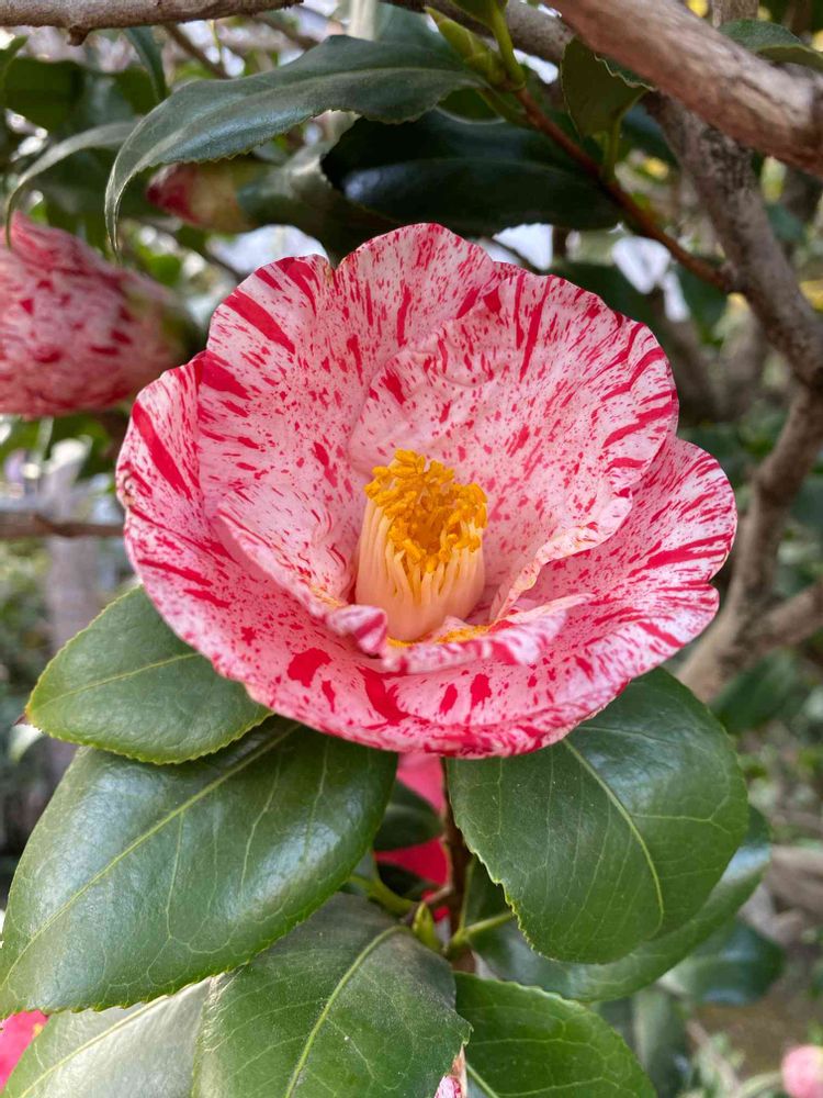 近所でツバキの吾妻絞が咲き始めておりました😆😆