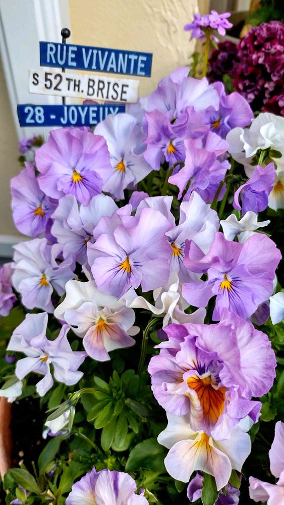 ブローインフィールドとシエルブリエ、ロカハーツの絞り咲きビオラの寄せ植えですが、みんな同じような色になってきました😆💦