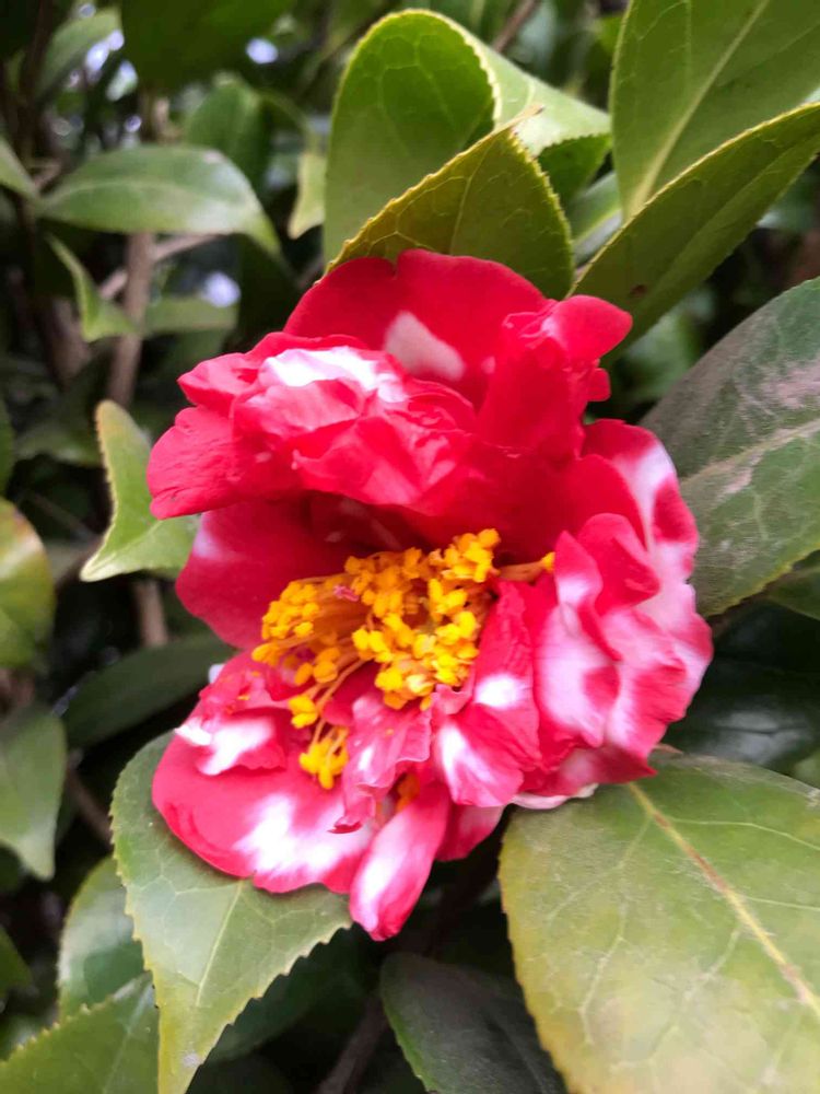 椿にも花びらが縁取り白かったり〜はっきりラインが入っていたり色んな種類を見せていただきましたが〜これまた模様が変わってキレイですね〜😍