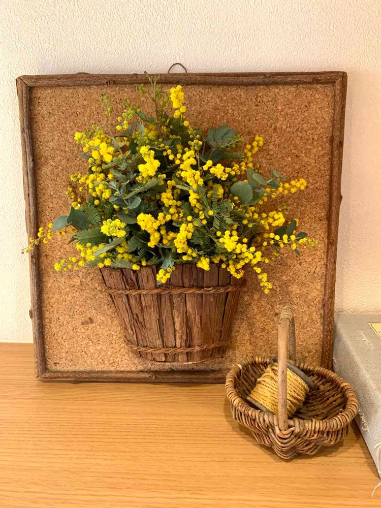 ミモザ💛を手にした時に、あのボードにミモザを使って作ってみよう!!て思いました☘