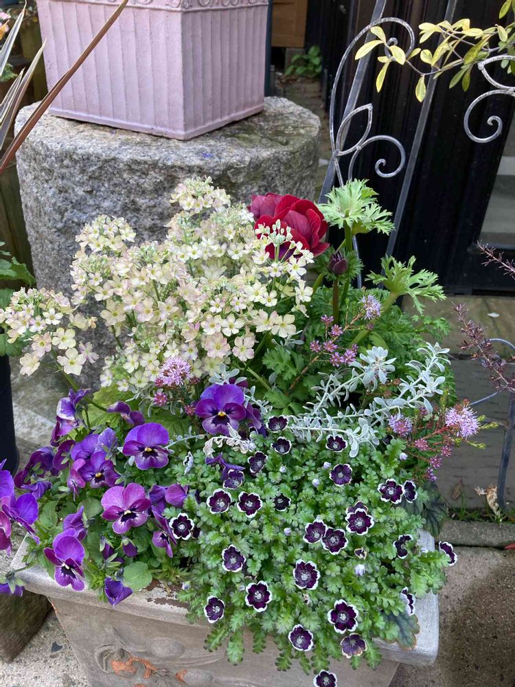 すてきな寄植えですね💕😉とみこさんの美しい花たち🌼で朝の始まり♬癒やされました😍ネモフィラブラック探してみまーす!