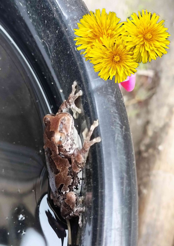 今日のお花✨たんぽぽ💛と🐸サン✨