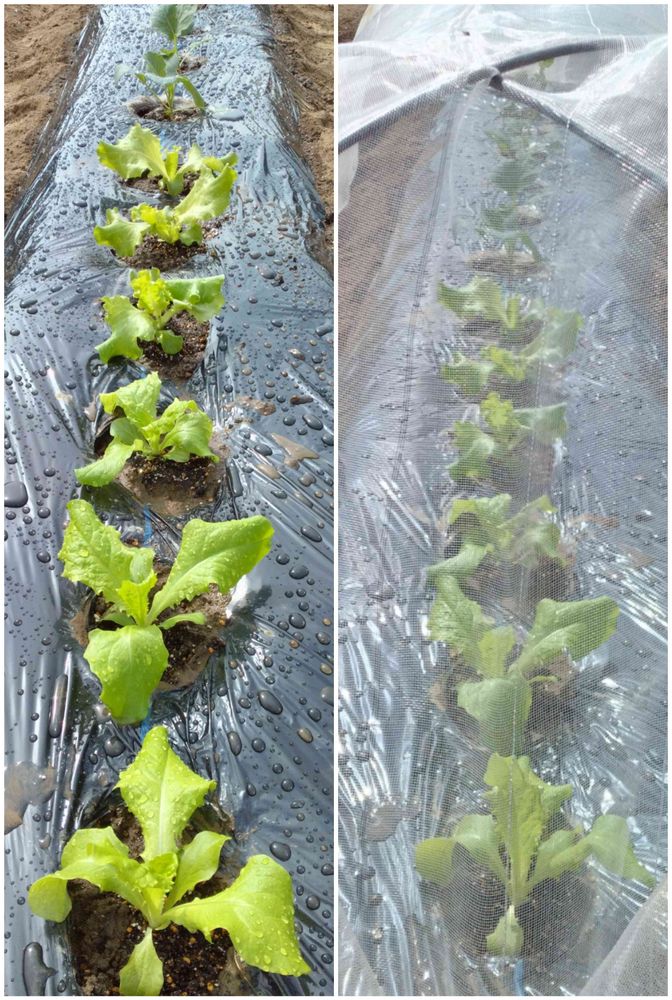 サンチュ3、サニーレタス3、キャベツ4、ブロッコリー3植えました。キャベツとブロッコリーは中早生です。