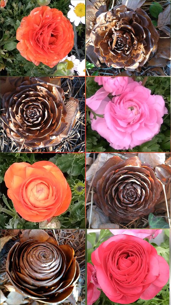花壇にあったラナンキュラスを眺めているうちに、シダーローズに似てるなあと思って、思いつきました💡